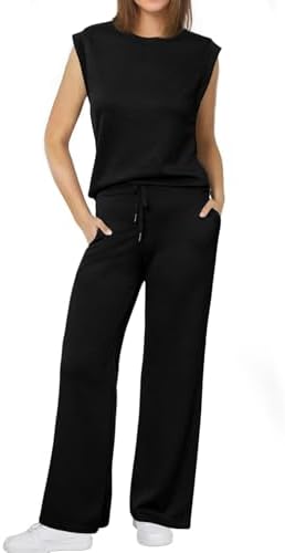 Glamaker Women’s 2 Piece Sets Lounge Travel Sleeveless Wide Leg Sweatsuits